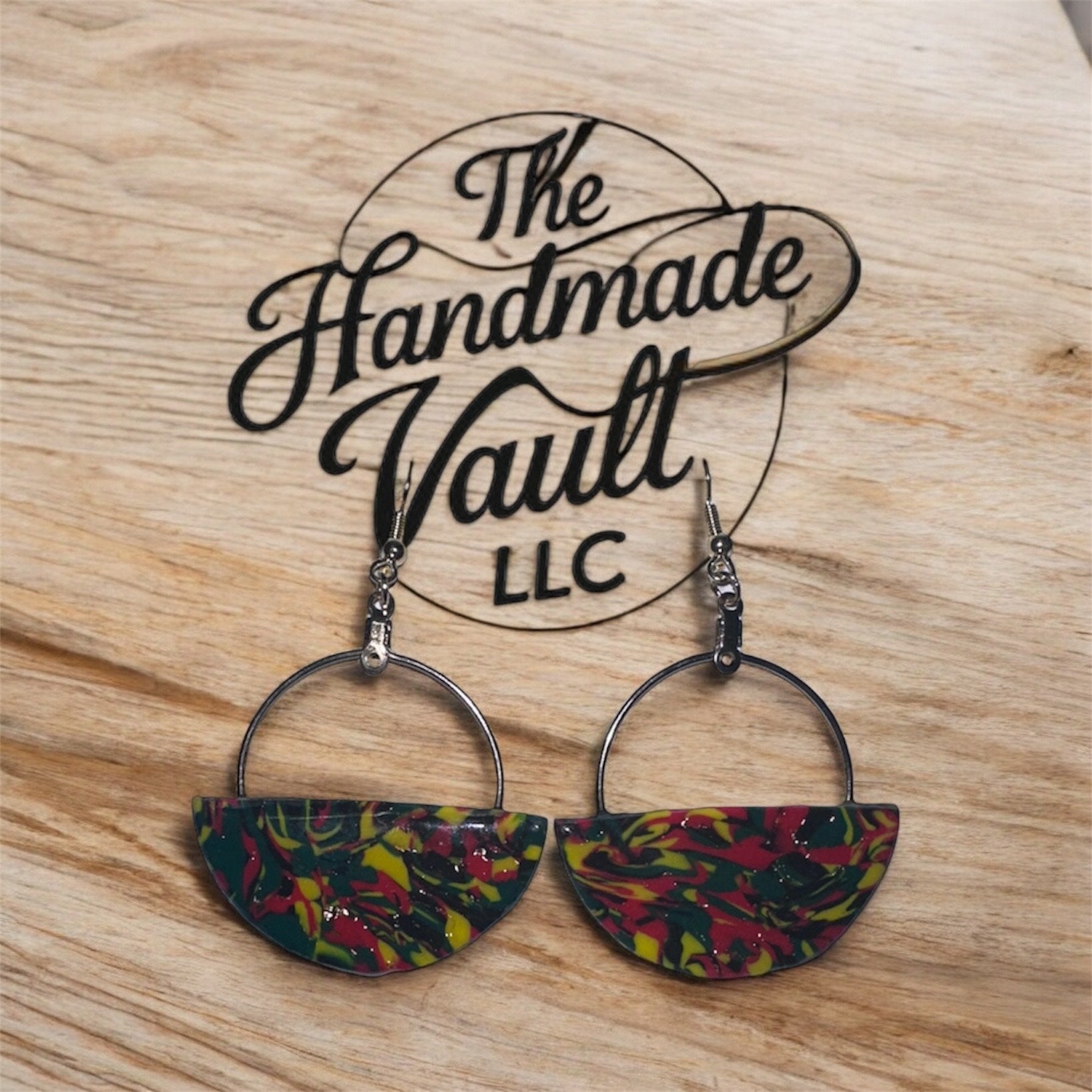 Celebrate freedom in full color with the Juneteenth Halos. These vibrant half-moon earrings are framed in sleek silver hoops, symbolizing unity and wholeness. The swirling pattern of red, yellow, green, and black bursts with energy, paying homage to African heritage and the enduring spirit of liberation.
