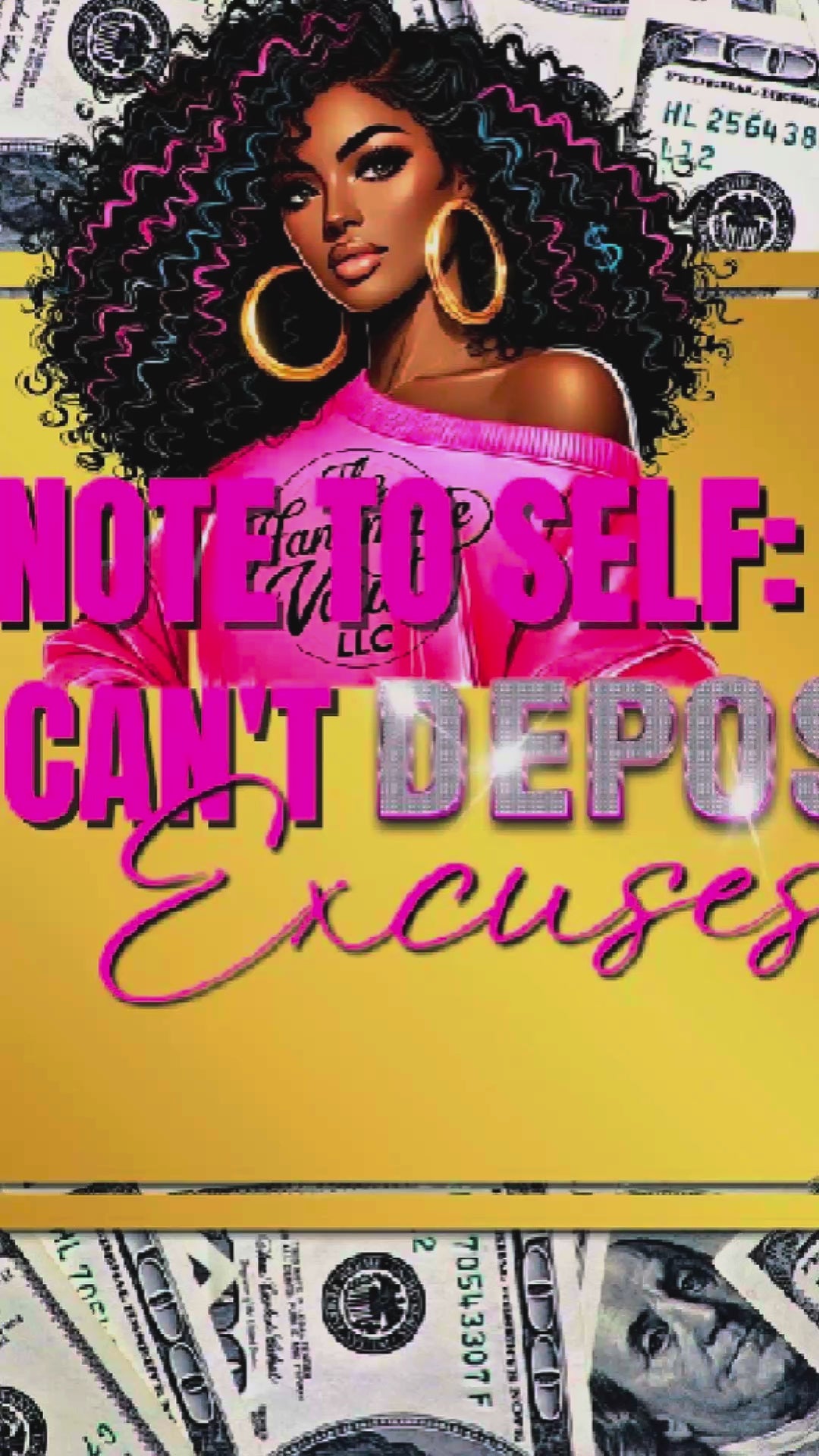 Level up your daily hustle in style. This tumbler is made for the woman who moves with confidence, ambition, and a touch of glam. Featuring a stunning illustration of a bold beauty rocking soft pink tones, big curls, and statement hoops all wrapped in a sleek money-print design. This piece is more than just a cup, it’s a daily reminder to invest in you.