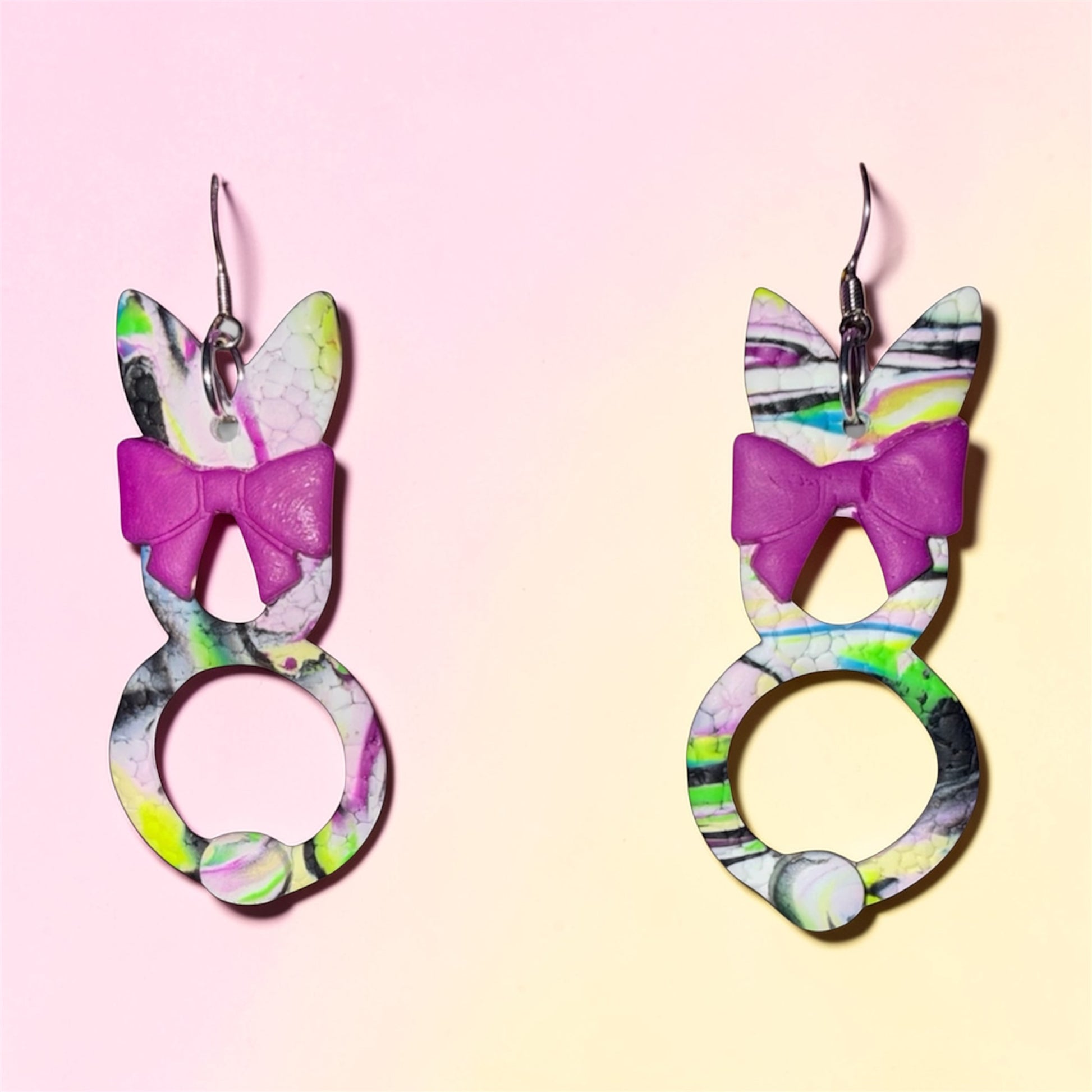 A mix of abstract patterns and rich magenta accents gives these bunnies an artsy, one-of-a-kind vibe. For the trendsetter who likes their accessories a little unexpected and full of personality.