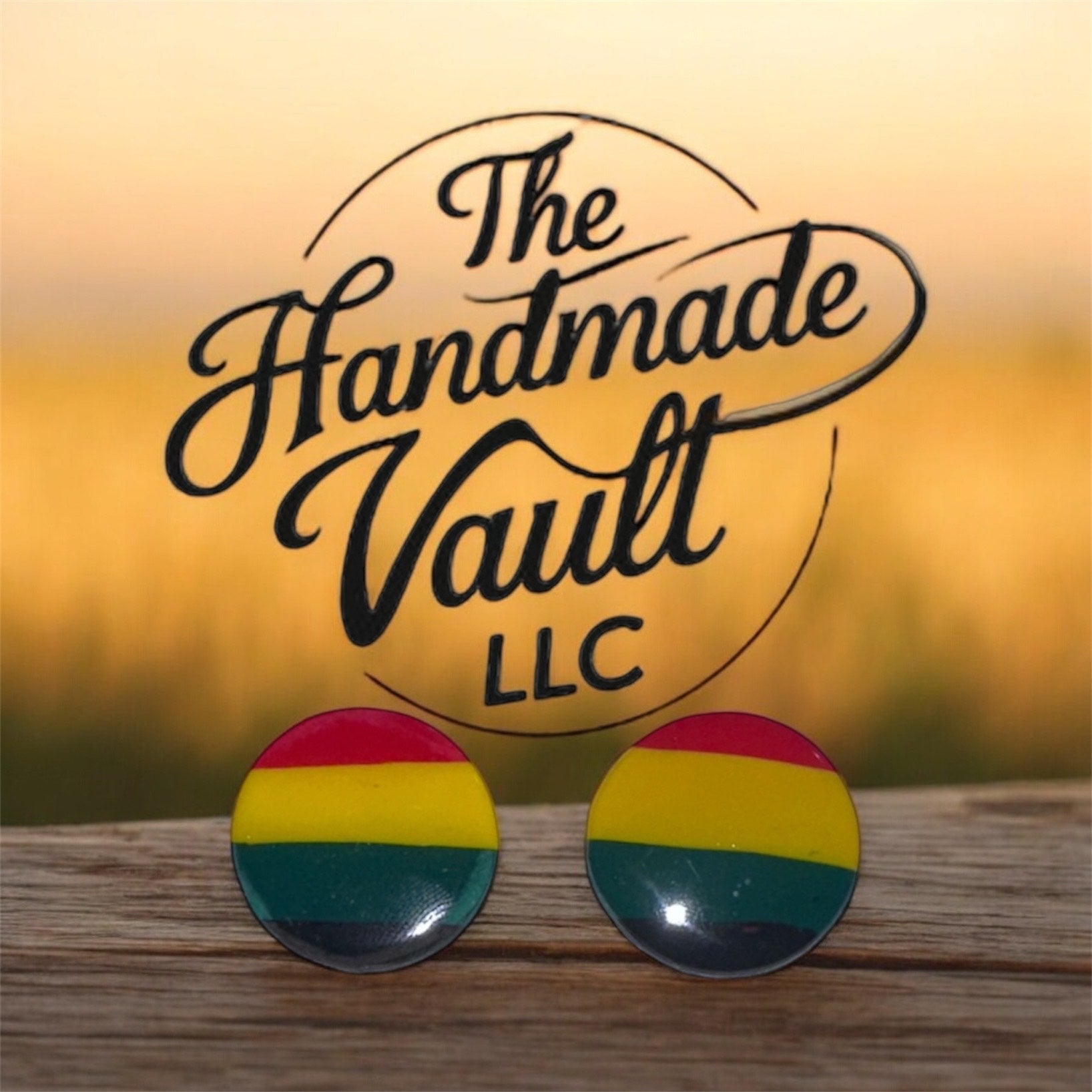These bold round stud earrings celebrate legacy and pride with vibrant layers of red, yellow, green, and black, symbolic of strength, resilience, and liberation. Crafted for everyday empowerment, the Roots Revival Studs are a lightweight statement of cultural love and ancestral honor. Perfect for adding a subtle pop of purpose to any look.