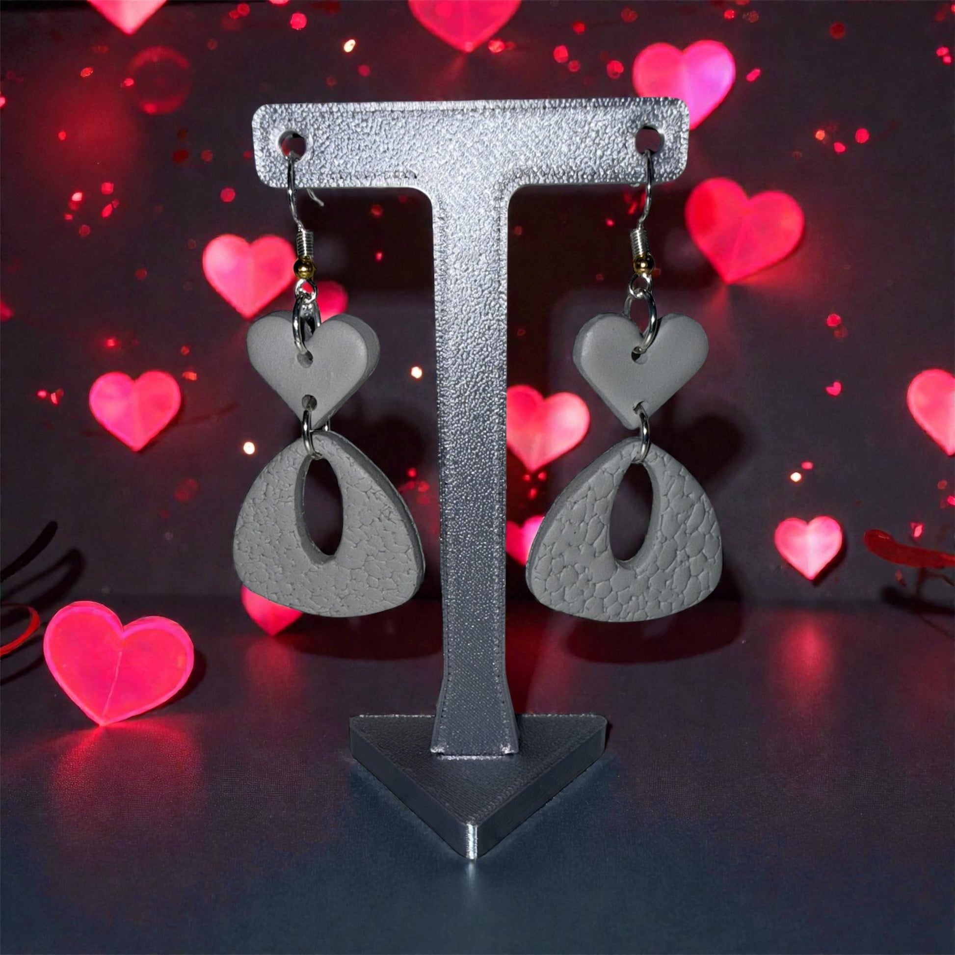 Cool gray hearts with sculpted neutral drops.
