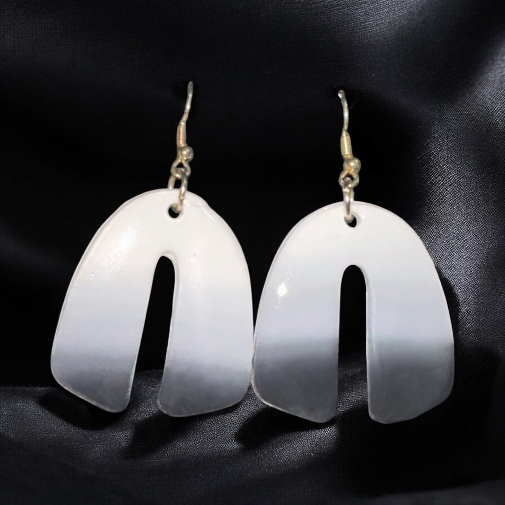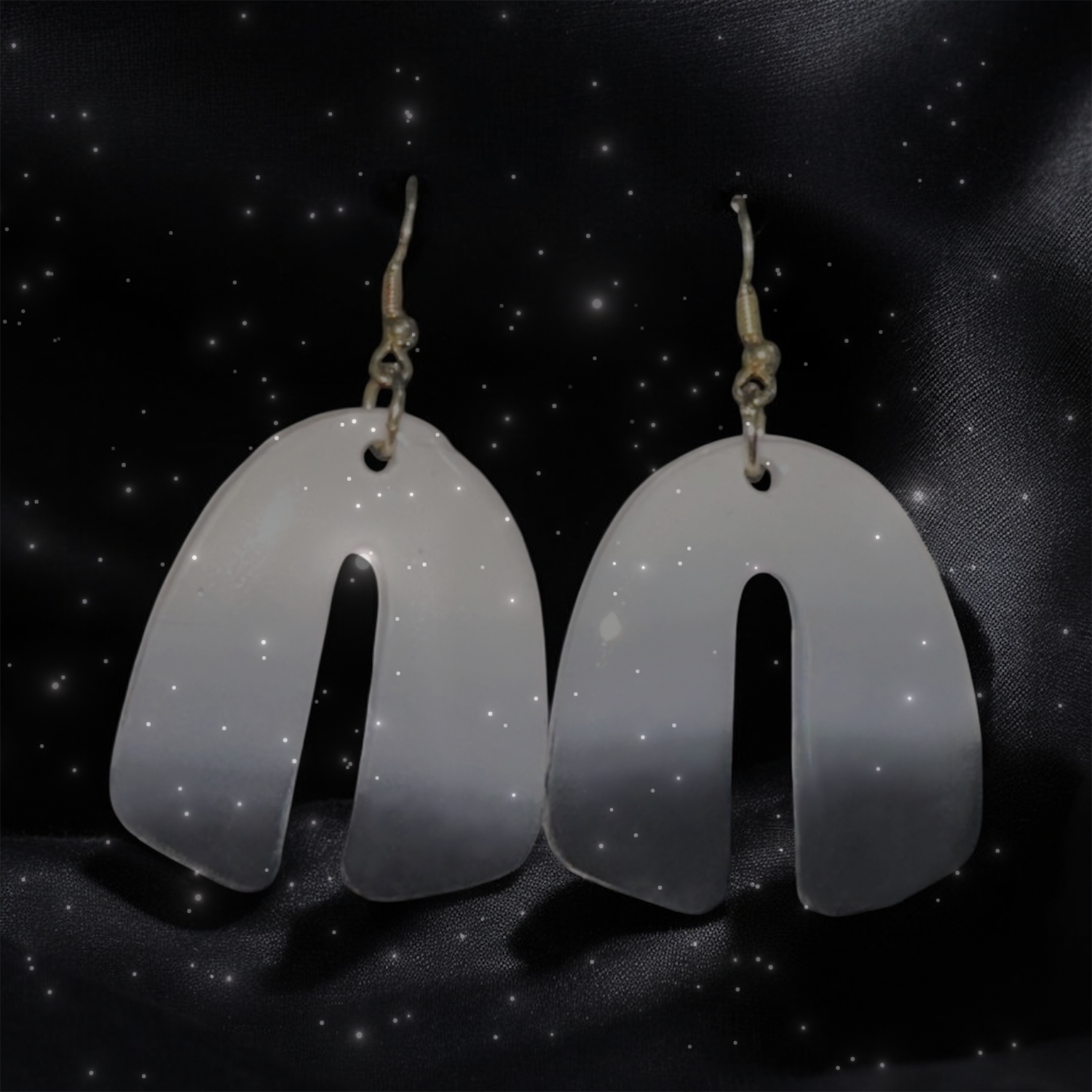 Minimalism meets elegance in the New Moon earrings These handcrafted polymer clay earrings feature a sleek, arched silhouette in a luminous white-to-soft-gray ombré finish. Their high-gloss surface reflects light beautifully, adding a subtle yet eye-catching glow to any outfit. With their modern, sculptural form and neutral tones, these earrings are the perfect statement piece for both casual and formal looks exuding grace, confidence, and timeless style. New Moon occurs on 7/24/25.