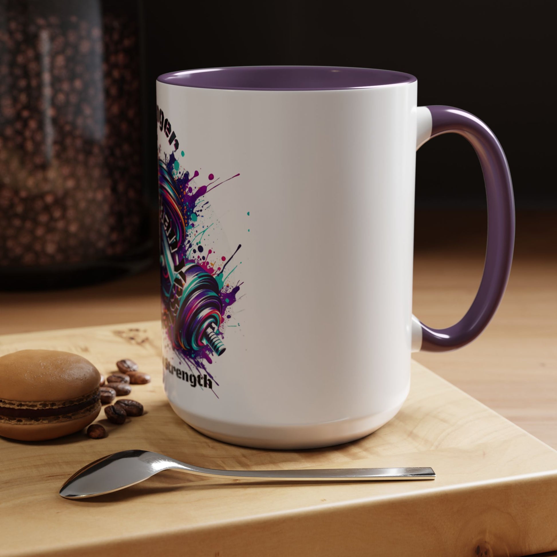 This Strong & Vibrant Workout Mug is the perfect motivation for your morning coffee or tea. It's a great fitness gift for gym lovers, featuring an inspirational quote to kickstart your day. Ideal for those looking for a boost of positivity during workouts or daily routines. Perfect for birthdays, holidays, or any special occasion.