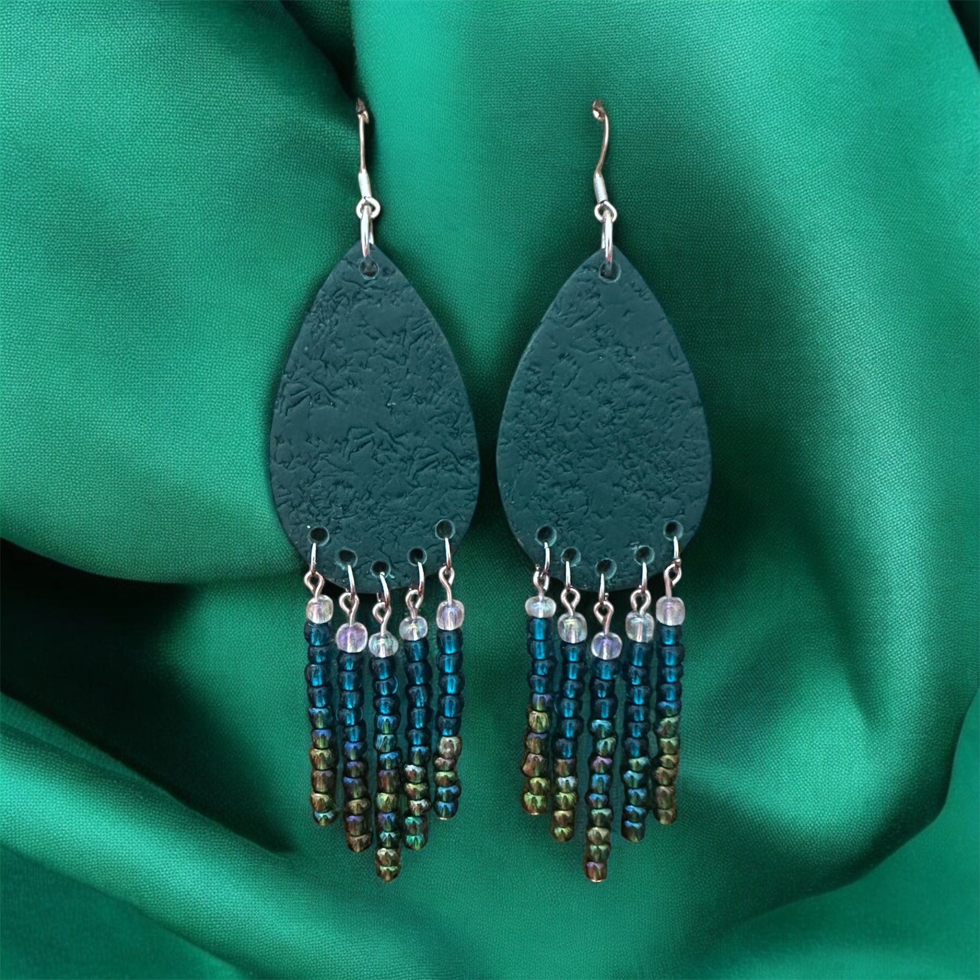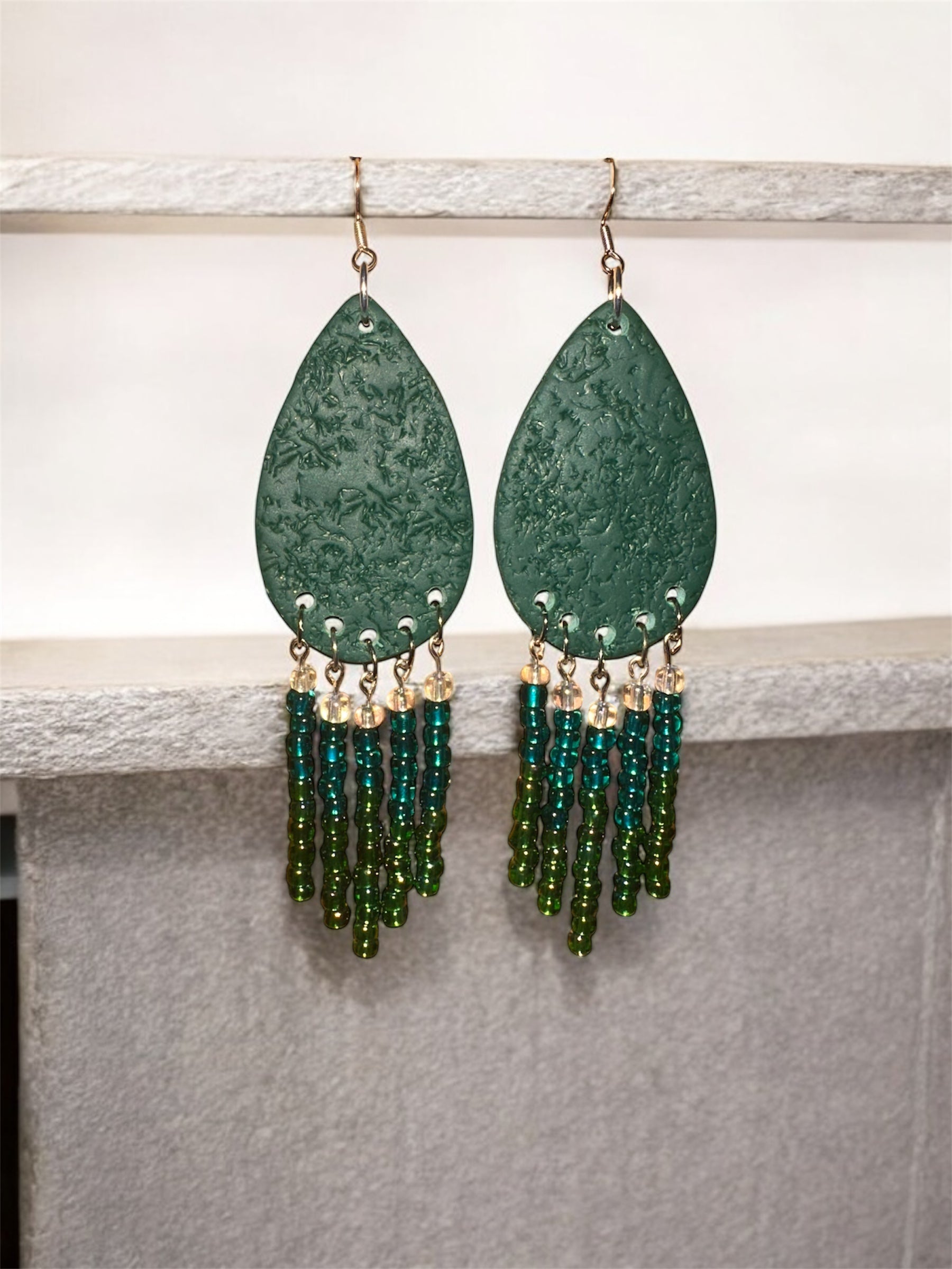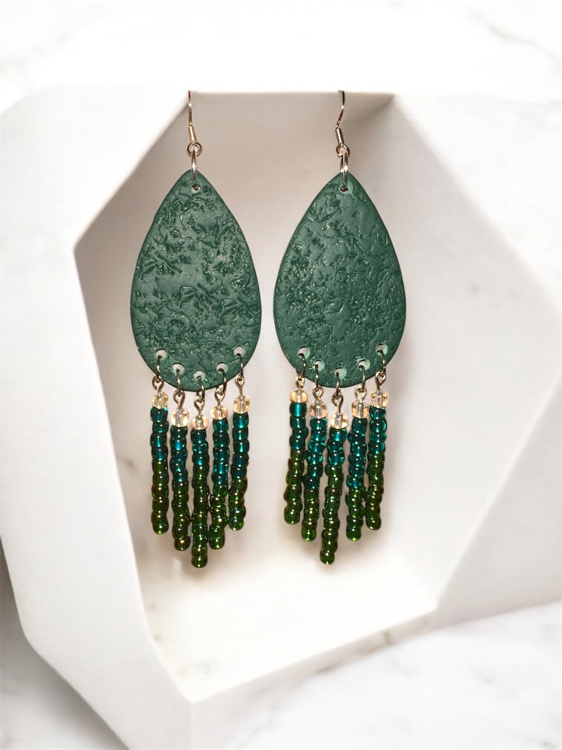 Delicate yet powerful, Teardrops of Terra earrings are an ode to the raw beauty of the natural world. Each piece features a graceful teardrop design, echoing the shape of rain falling on earth, fluid, grounding, and timeless. Crafted with earthy beaded gemstone colors and warm, organic metals, these earrings radiate a quiet strength, reminding the wearer of their deep connection to the planet. Whether worn as a statement of elegance or a symbol of inner grounding, Teardrops of Terra embody nature’s harmony in every curve and shimmer.
