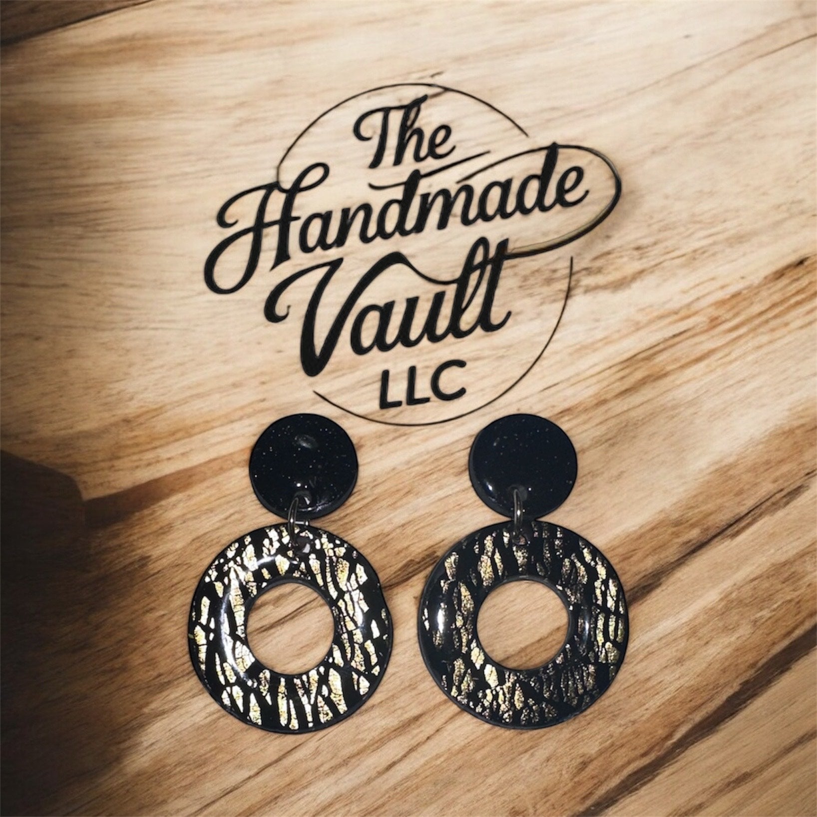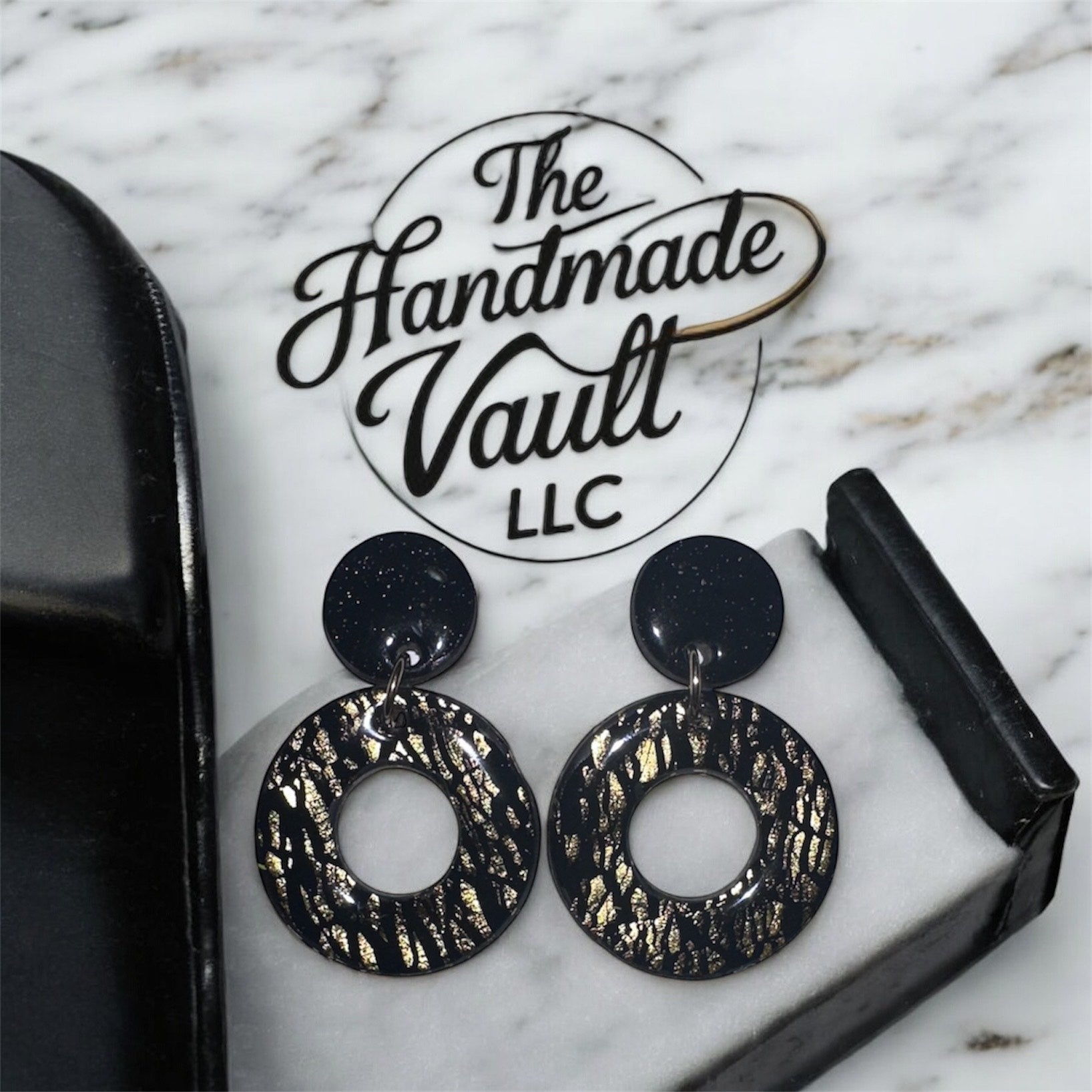 The Midnight Gold Drip Hoops are a fierce fusion of elegance and bold identity. Crafted in a statement-making open circle design, these earrings feature a rich black base infused with gleaming gold foil accents that resemble liquid gold dripping across a midnight sky.